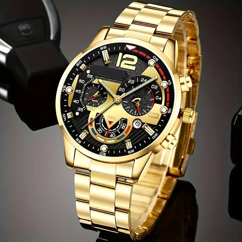 Елегантний чоловічний кварцевий годинник, який привертає увагу своїм вишуканим дизайном та витонченою стилістикою. У комплекті до годинника ви знайдете стильний браслет, ланцюжок та кільце, що додають образу особливої вишуканості та завершеності. Ідеальний аксесуар для тих, хто цінує неперевершений стиль та якість.